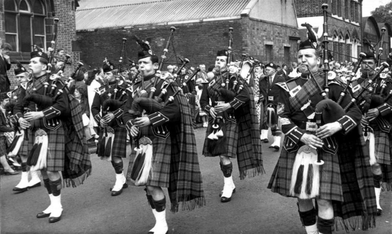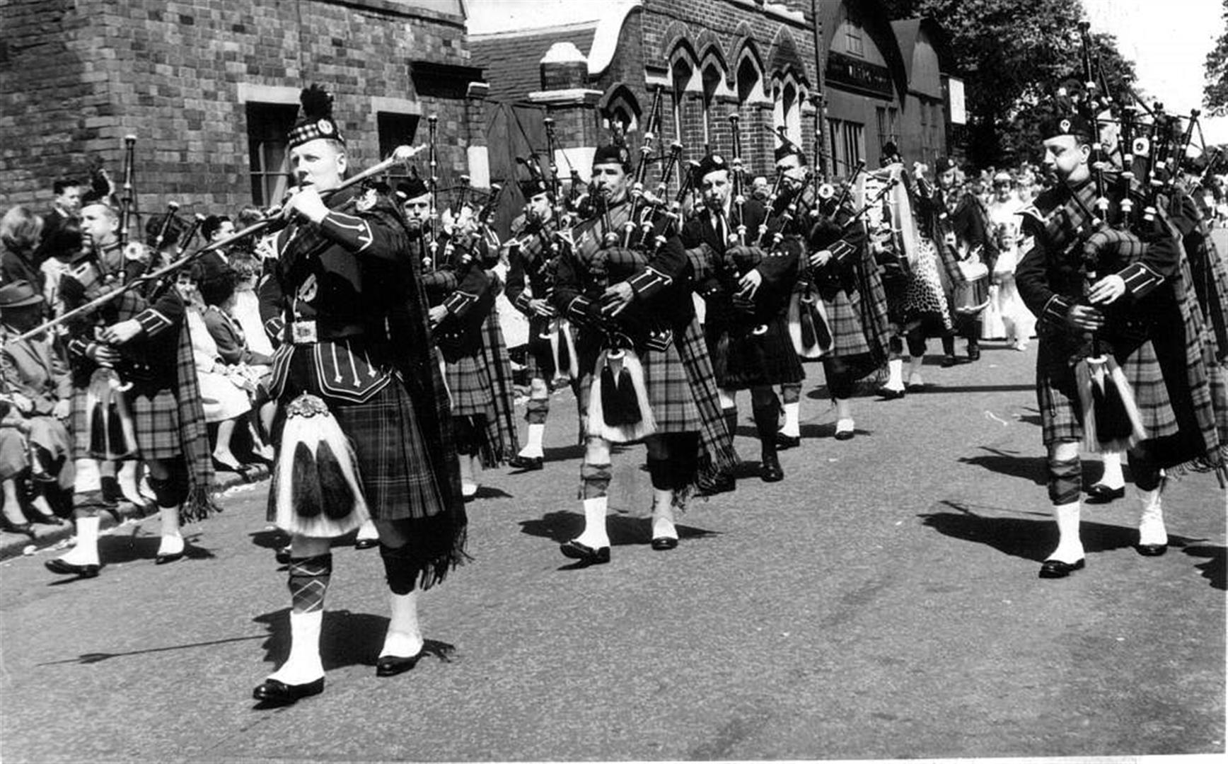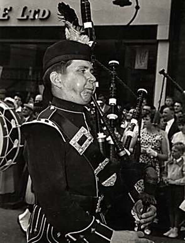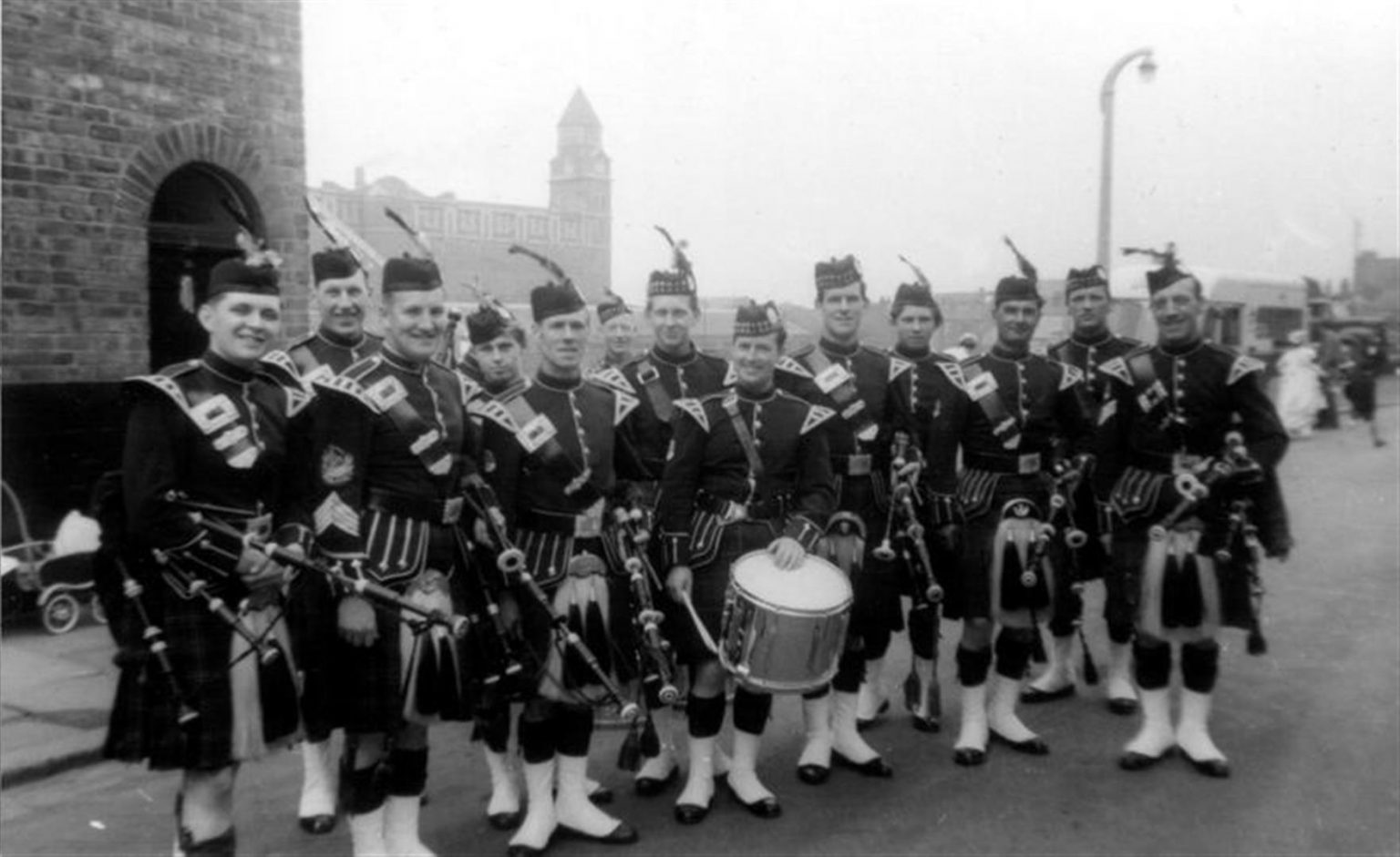 Footnote: In 1962. Warrington Pipe Band, after a successful engagement season, purchased 18 new kilts and plaids. The new tartan they adopted is their present tartan: ‘Ancient Cameron of Erracht’.