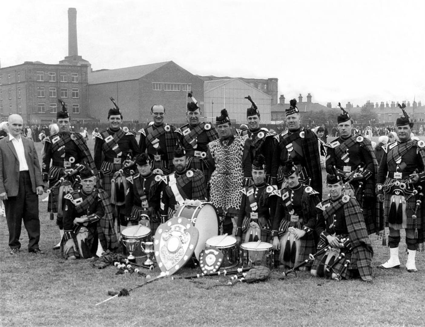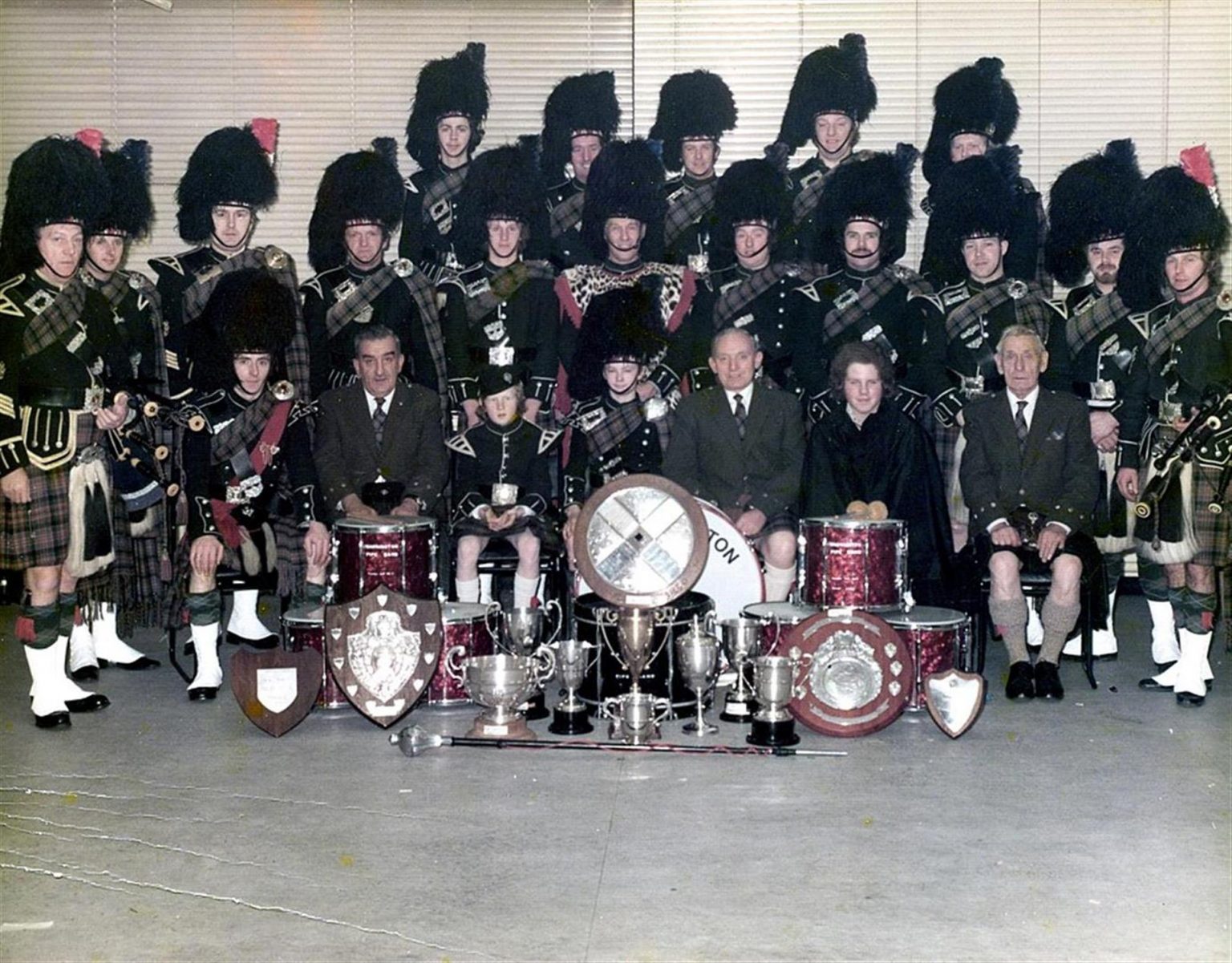 Taken in 1975 at the end of the season when the band led by P/M Willie Srathearn won the World Pipe Band Grade 3 Championship and were proclaimed Champion of Champions Grade 3.